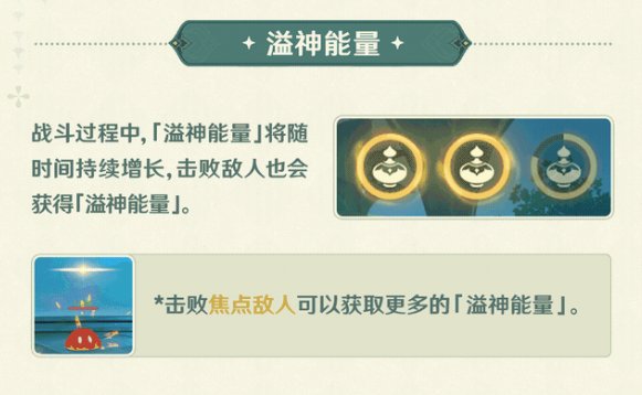1、战斗过程中,「溢神能量』将随时间持续增长,击败敌人也会获得溢神能量。