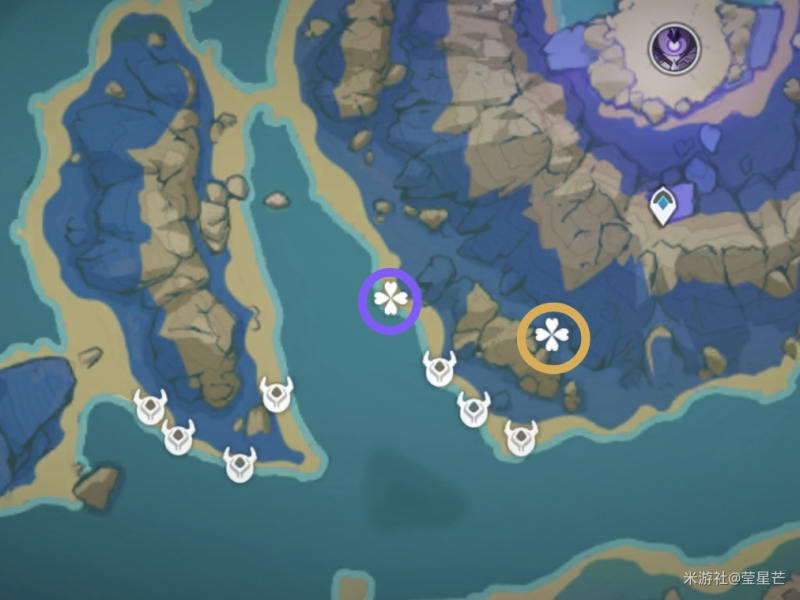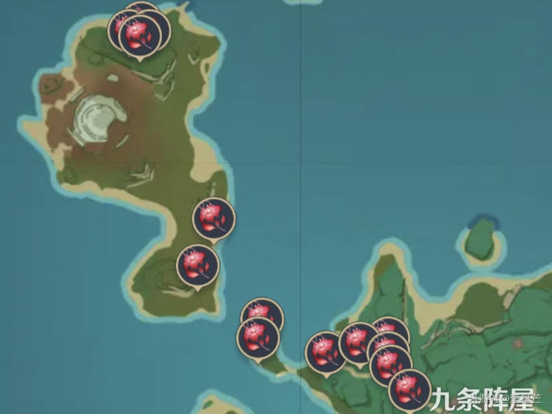 不过要注意的是左上角的4个血斛可能要拿雷种子才能进去,雷种子就在附近的小小岛上(有个雷丘丘王坐着的)