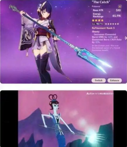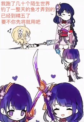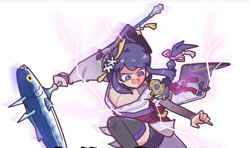 当然,让堂堂雷电将军拿着怎么一杆“鱼叉”是在有点跌份,也因此诞生了“雷神拒绝鱼叉”的梗图: