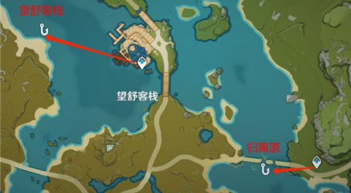 璃月:绿华池、望舒客栈、归离原钓鱼点。