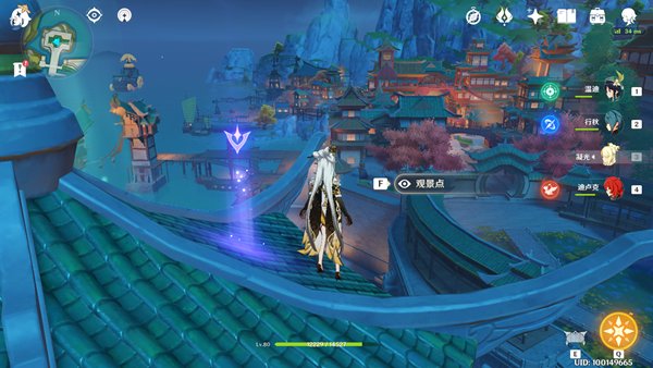 2、其次,到达璃月城市中心后需攀升至屋顶,便可发现此观光地点。