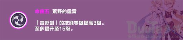 五命:雷影剑因为吃不到旗印4,而且雷主是充能沙的配装,所以对伤害提升不明显,这个命座只能算惯例升级天赋。