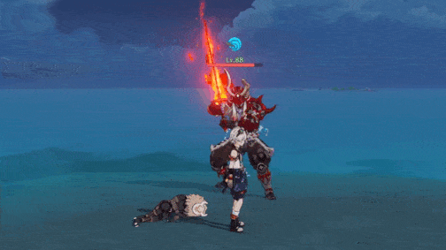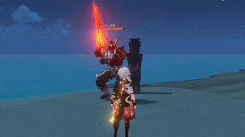 炎威的招式基础伤害中等,且出招准备前摇较长,对玩家的威胁程度一般。但炎威在释放【引火】后,攻击将附魔火元素,当角色身上附着有水元素或冰元素时,将触发增幅反应对角色造成较高伤害。因此旅行者在面对炎威时要时刻留心角色身上附着的元素。