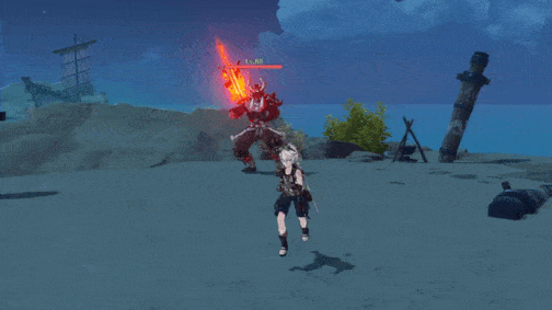 三段斩击若同时命中角色时伤害不俗,所幸前两段斩击命中角色后角色不会产生明显硬直,即使被前两段伤害命中也能躲过第三段斩击。