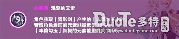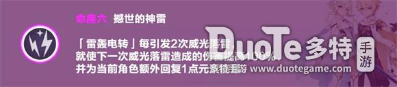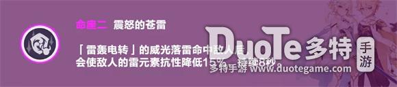 雷影剑因为吃不到旗印4,而且雷主是充能沙的配装,所以对伤害提升不明显,这个命座只能算惯例升级天赋。