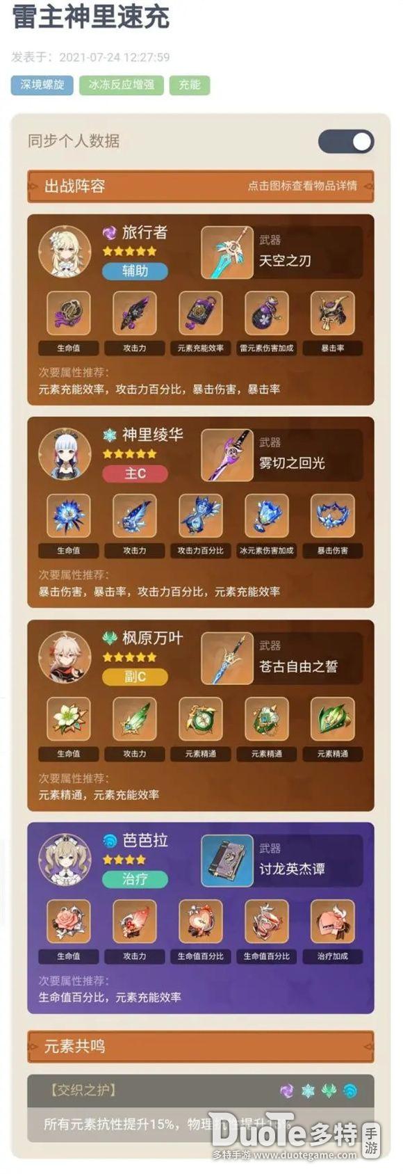 接下来为大家详细介绍第一套配队,神里和雷主的速充队:
