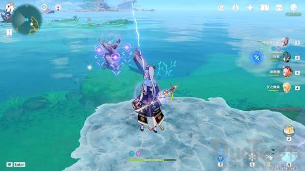 正如介绍所示,雷指针会指向被“雷元素附着的人身上”。那么,我们该如何被雷元素附着呢?康康上下图你就知道了吧!没错!就是电气水晶!记住!千万别把它打掉了,我们蹭一蹭就好