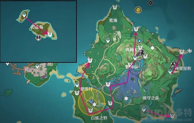 原神刷取名刀镡最佳路线介绍八酝岛路线