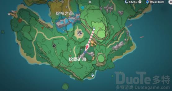 传送至图示传送点后,直接飞行过去即可到达蛇骨矿洞的鸣神磐柱所在位置。