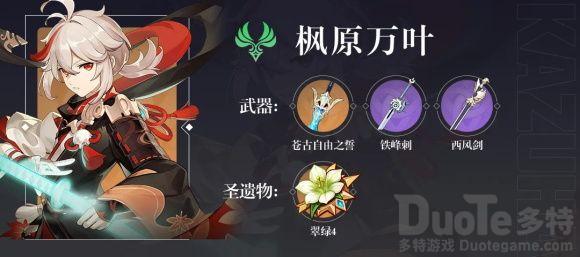 第四名可选的最佳角色为刚登场不久的风辅助「枫原万叶」和老牌全能拐「钟离」,笔者更推荐使用「万叶」。