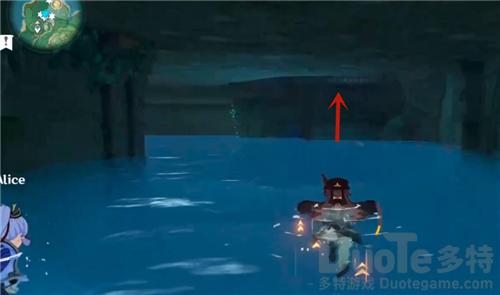 解开这个机关后,水位便会下降,从宝箱前方的洞口跳下去,一直往前方游。