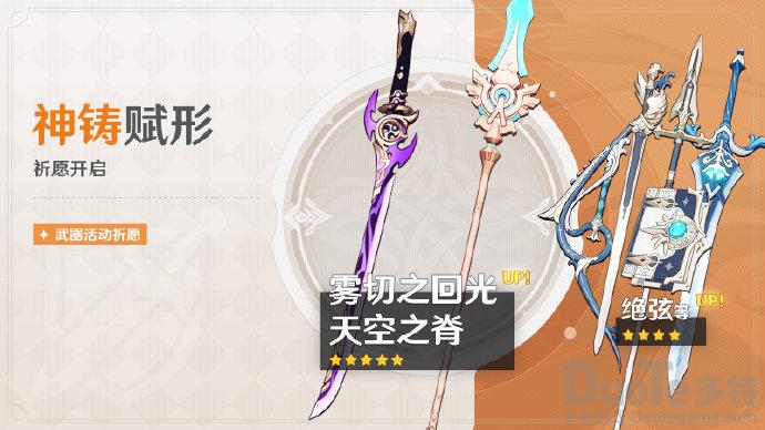 以上就是原神2.0神铸赋形可获得武器的全部内容了,玩家们可以在「神铸赋形」活动祈愿中获得更多武器与角色,来提升队伍的战斗力!更多精彩内容请多多关注多特手游。