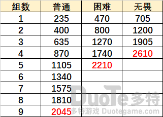 第1组(只刷一次):积分普通235,困难470,无畏705