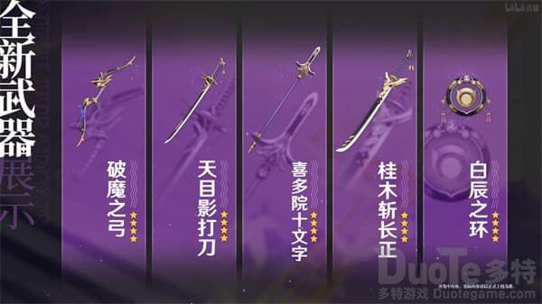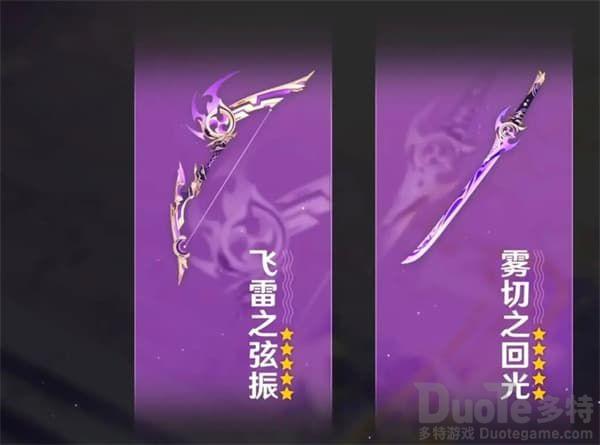 2.0版本有2把五星武器:「雾切之回光」、「飞雷之弦振」,同样也会有5把四星武器等着大家,都是通过锻造获取的哦!
