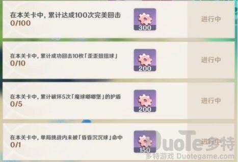 5.累计回击10次歪歪扭扭球:难度有点大,因为歪歪扭扭球的轨迹不定,想要完成该任务的旅行者需要多练一练哟~(或者多打几次)