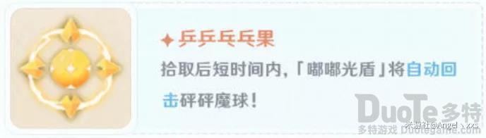 3.乒乒乓乓果:拾取后短时间内,走近「砰砰魔球」即会自动回击,此时为完美回击。