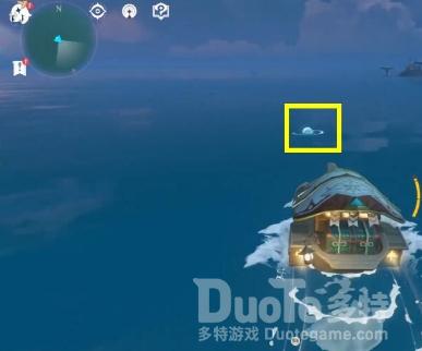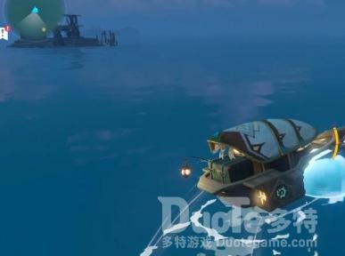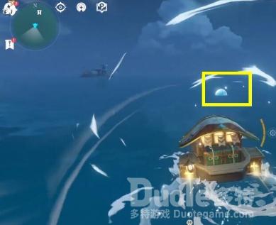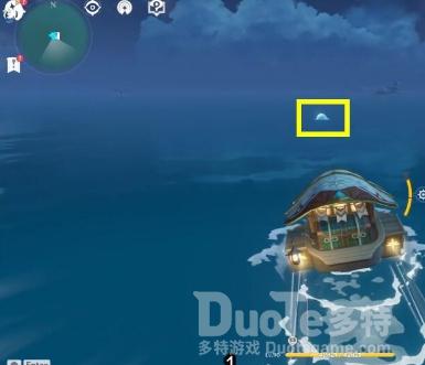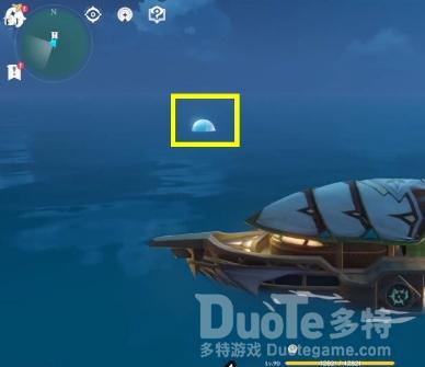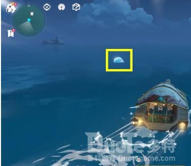 1、我们先开船到左边的第一个点位,可以看到一个水泡,开船去撞;