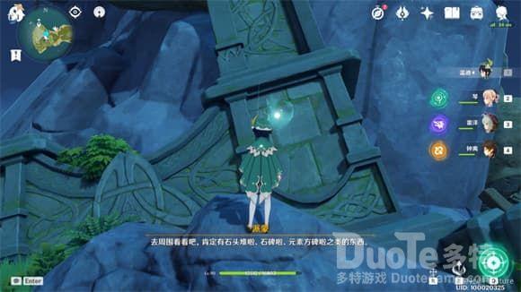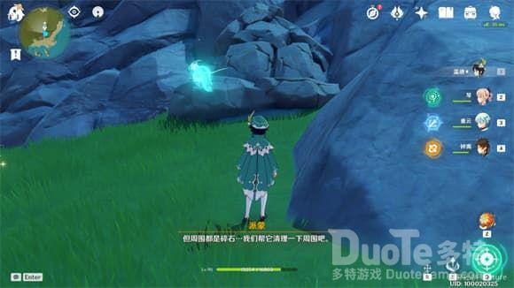 通过传送通道的传送回到了蒙德境内。在继续跟随仙灵前进清理碎石,即可看到仙灵台座。