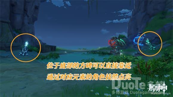 方碑四:水元素方碑,位于岛中的空洞上边,也可以使用多种方法进行解锁: