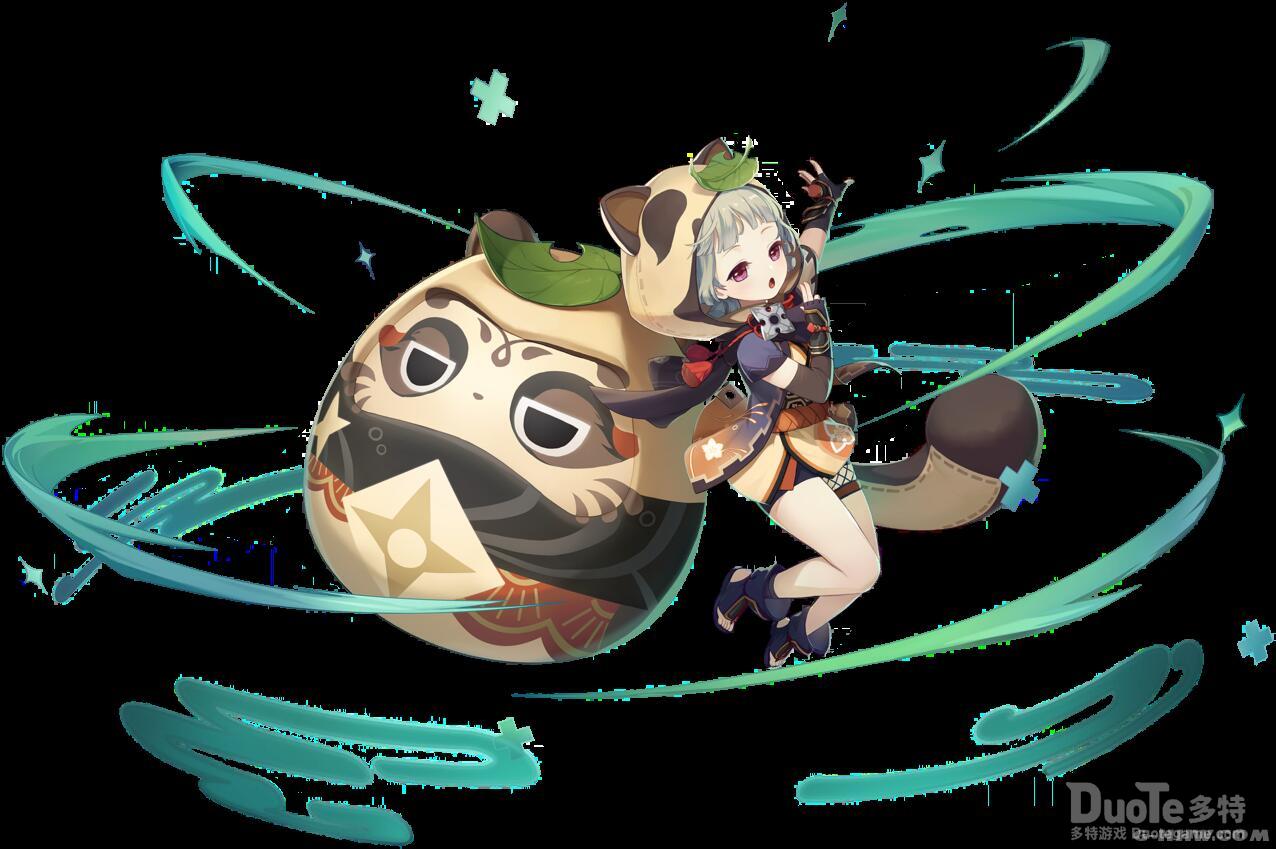 创造出替早柚干活的帮手,对身边的敌人造成风元素伤害,为队伍中附近全部角色恢复生命值,恢复量取决于早柚的攻击力,并召唤【不倒貉貉】
