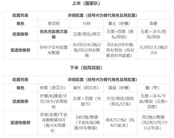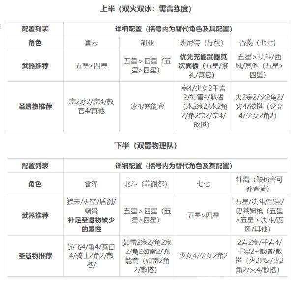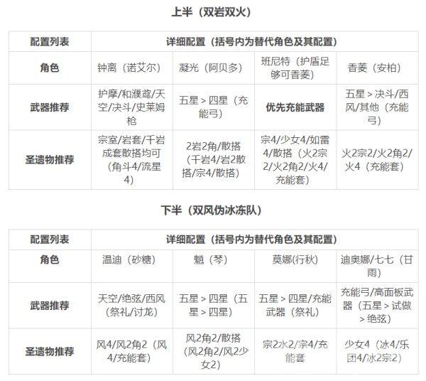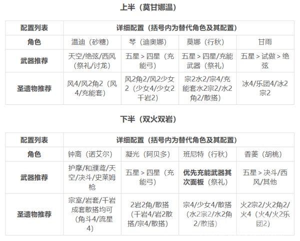 下列配队仅提供思路,其中每个阵容均可视账号角色深度,通过替换其中相同定位角色进行替代补足,通关的难易程度视练度而定。