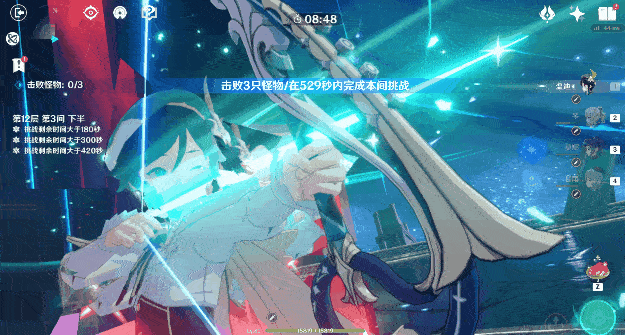 (3)在讨债人进行隐身时,可使用雷、火角色配合产生的超载反应将其打出隐身并击飞,同时可用其他带有高打断能力的技能将其打出隐身,如:钟离的长摁e、琴的e、大剑的特定普攻。