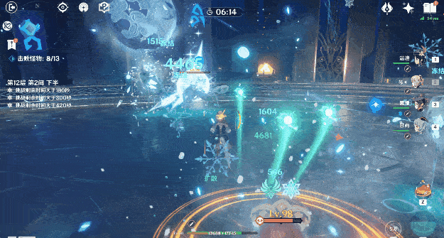 (2)使用冰属性角色+风属性角色配合能够打出范围冰冻效果,如:迪奥娜+琴等
