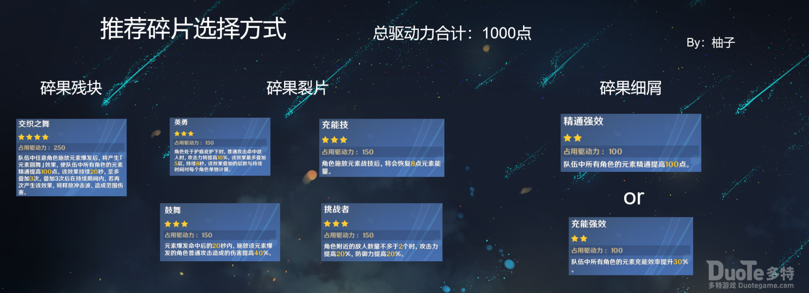 今天通过调查点获取碎片之后,我们现在能选择的碎片搭配方式有很多。这里依据元素与攻击方式,推荐以下两种不同选择。其他搭配方式旅行者也可以自行尝试: