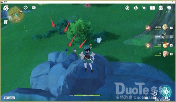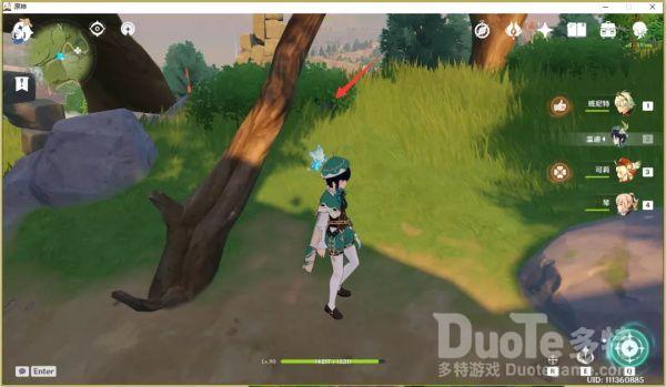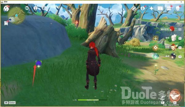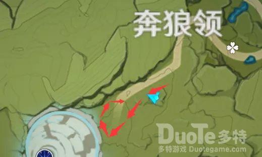 第一个钩钩果传送到奔狼领之后沿着路走,在看到一队站在高台上的丘丘人时右侧的山上会看到第一个钩钩果,