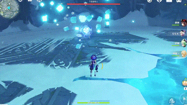 「塔勒特」残血不常用技能:为了防止旅行者靠近击打护盾,只要靠近虚弱的「塔勒特」就会出现扇形冰针攻击旅行者。