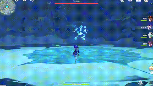 「塔勒特」最常用的技能之一分为三种攻击方式:1段冰轮/2段冰轮/3段冰轮。这里拿最麻烦的3段冰轮讲解:在攻击期间「塔勒特」会化身冰轮蓄力冲向旅行者,因为3段冰轮是来回攻击旅行者,所以需要把握好闪避节奏!