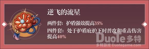 使用【流星】4的「烟绯」只推荐和「钟离」组队搭配,武器优先选择【尘世之锁】,两件套和武器被动能够大幅强化「钟离」为「烟绯」提供的护盾,完美解决「烟绯」头疼的输出环境问题,增伤乘区也能兼顾抗性降低、高额攻击力和重击加伤。比起【魔女】4牺牲了部分反应加成,换来超厚的护盾,适合喜欢安逸打法的小伙伴使用。