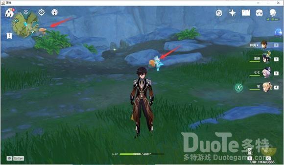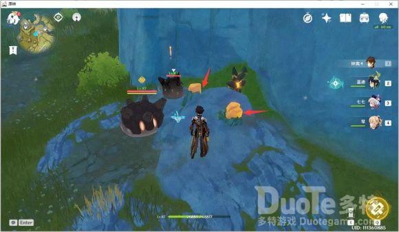 继续向下走,会看到一队丘丘人和第五个点位和第六个点位的石珀