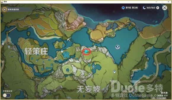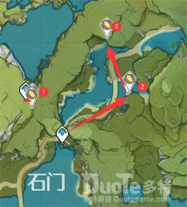 二号点位,沿着石门的路往蒙德走就会看到