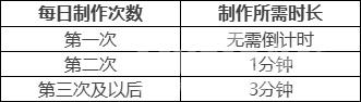 2-每日首次制作(0点刷新)无需耗时,从第二次开始需要等待一定时间: