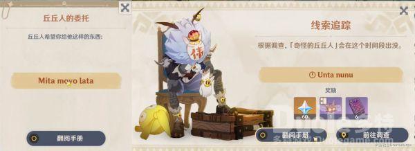 (2)完成了丘丘人的委托后,他们会将「奇怪的丘丘人」出没的时间线索告诉旅行者,并帮忙在地图上标出「奇怪的丘丘人」出没的区域。