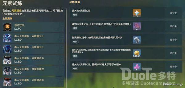 不同试炼有特殊的增益BUFF,类似1.4版本中的「争斗潮流」。总共有6个不同的主题试炼关卡,通关试炼可以获得70原石,总收益420原石。