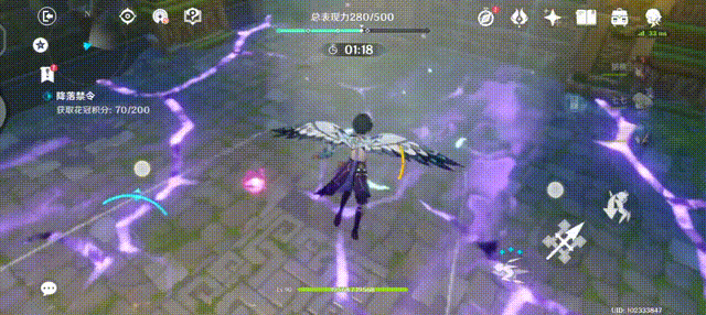 利用四周生成的风场上升,尽可能接取更多花冠,并坚持在空中飞行,如果坠落至地面,表现力将根据停留的时间增加而持续损失。