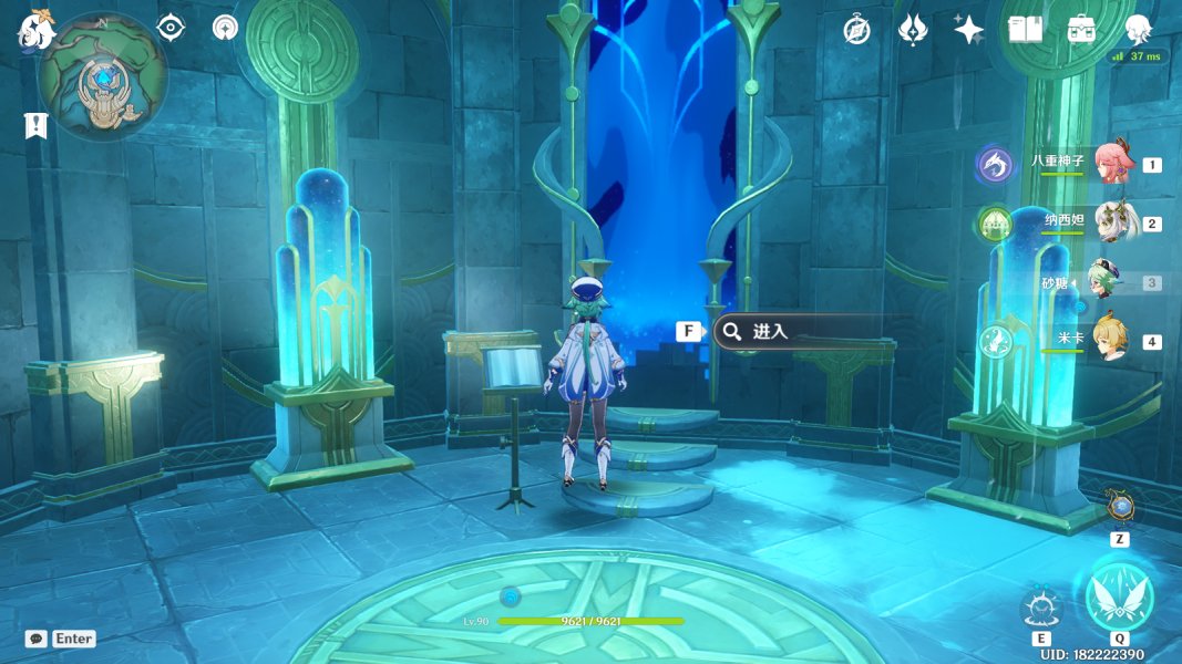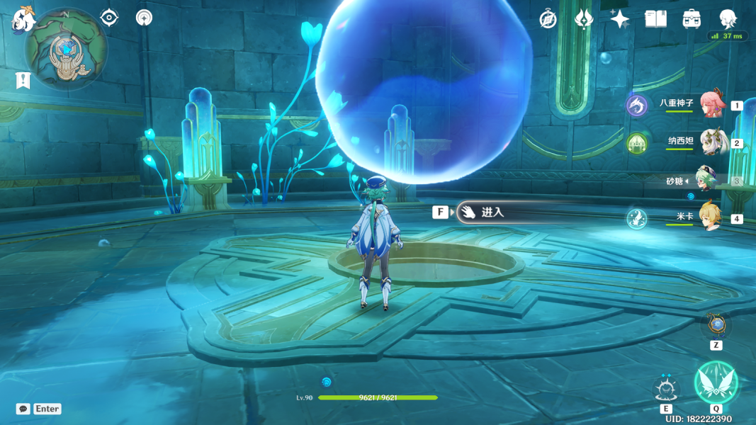 穿过机关门来到建筑内,交互面前的水泡泡