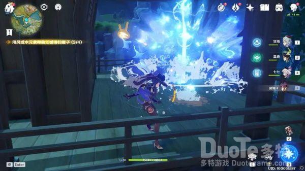 屋内的污渍很明显,共有四处,用水元素角色进行攻击或释放技能将污渍清理干净即可。