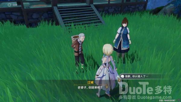 到达地点后与江城爷爷对话,爷爷误把旅行者当成了自己的老伴(泪目),旅行者也选择去帮江城爷爷打扫一下他的屋子。