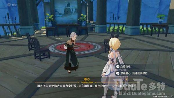 一番交谈后得知,若心对于轻策庄在海灯节期间依旧还是只有老少在庄,年轻人依旧在璃月繁忙无法脱身而感到无奈,同时也希望我们能去帮小白去打个下手。