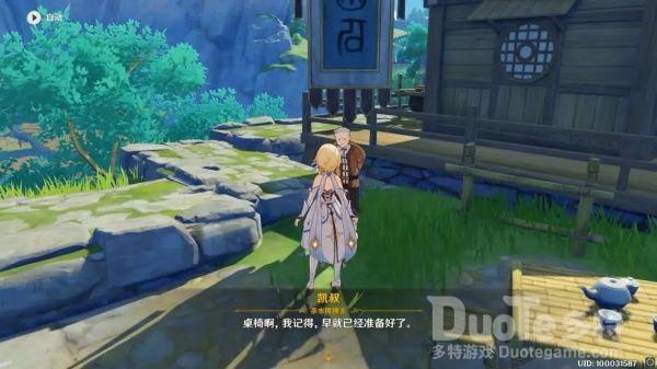 在获得足够的材料后我们再次与小白谈话提交材料。之后小白让旅行者去找凯叔让他去准备桌椅板凳。
