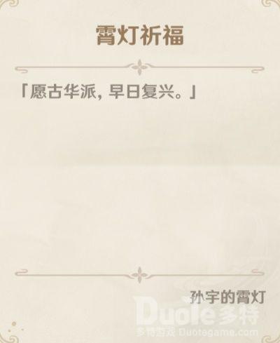 小雀儿这时和孙宇闹起了脾气,旅行者提出自己可以帮助放霄灯,孙宇给出了古华派的放霄灯位置。在放霄灯的地点,旅行者还遇到了也前来此处放霄灯的芷若。