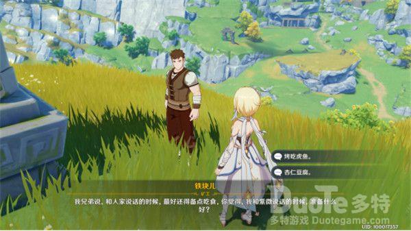 选择杏仁豆腐,铁块请求旅行者为他准备一份。