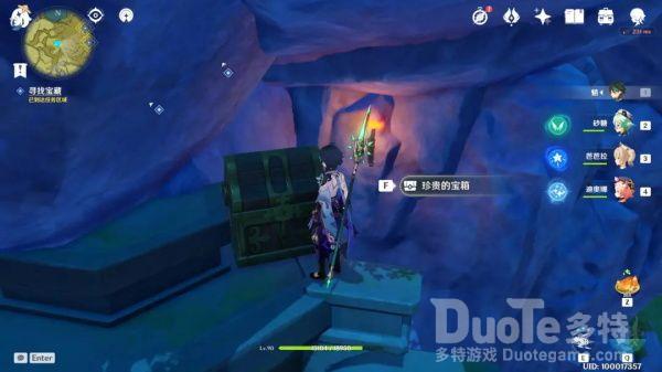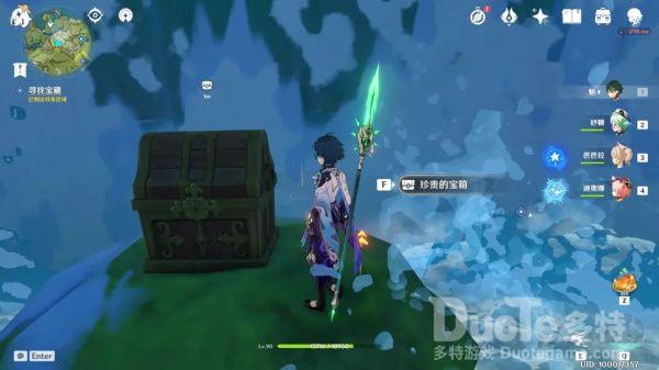中间的点位于无妄坡,在火圣遗物副本背后的山头,宝箱在一处瀑布下方,清理掉周围的冰史莱姆即可开启。