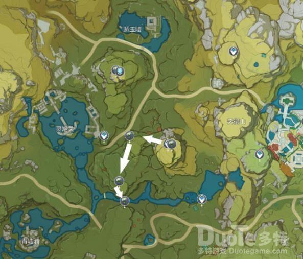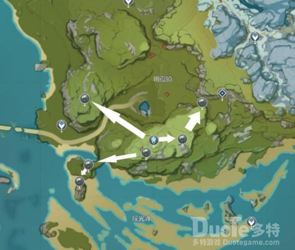 需要双风保持飞行的流畅性,在几个点之间多利用风场进行移动。神像那边有三个清心,往东南方向那个清心为节约时间可采可不采。