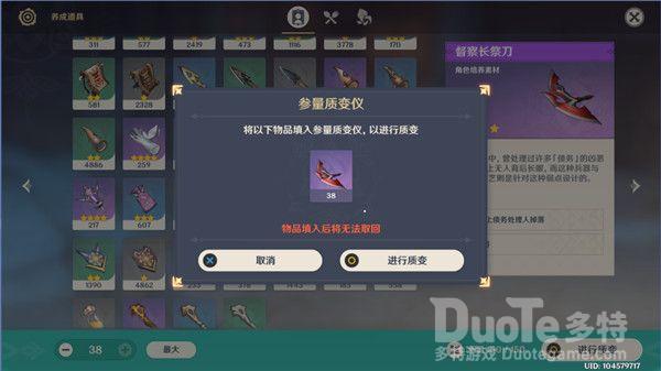 使用参量质变仪我们需要选择累计150质量的物品放入,可以放入养成道具(击败怪物掉落的各种素材)、食物(苹果和日落果)或者材料(大世界采集的各种素材),不同品质的物品质量也不同,我们只需要挑选自己多余的素材,凑够150的总质量放进去就可以了。点击"进行质变"按钮后,用元素进行攻击!