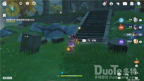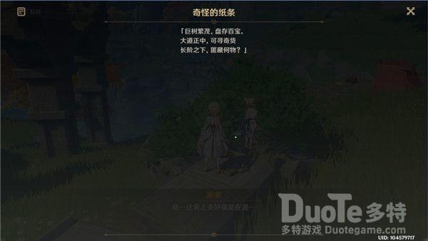 调查完藏宝图标记的位置后会获得<纸条>,标注出三个宝藏点