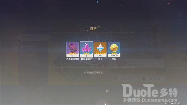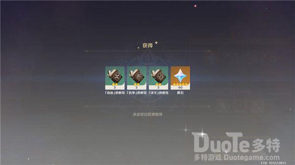 提交材料后,可获得奖励:原石*40 自由的教导*3 抗争的教导*3 诗文的教导*3